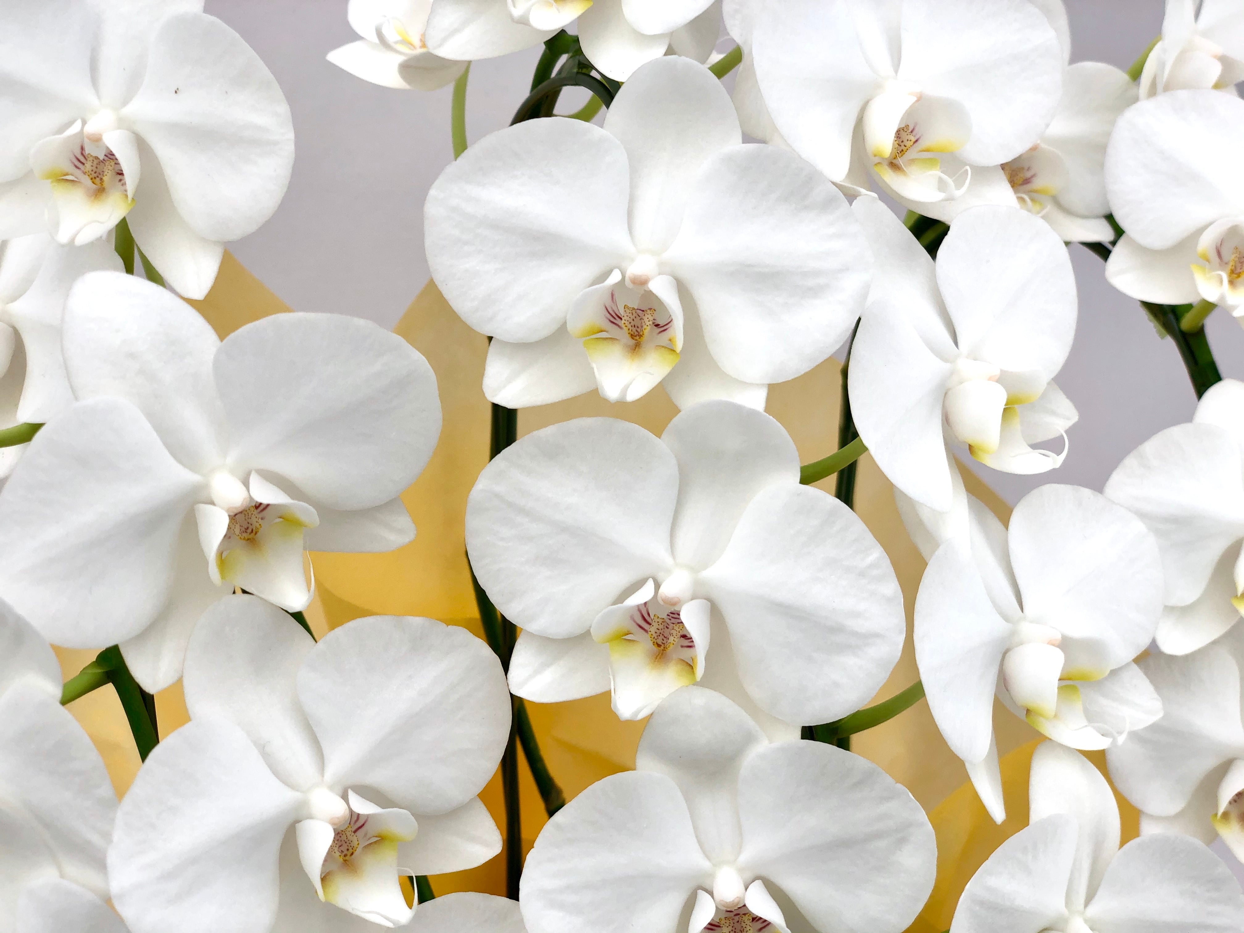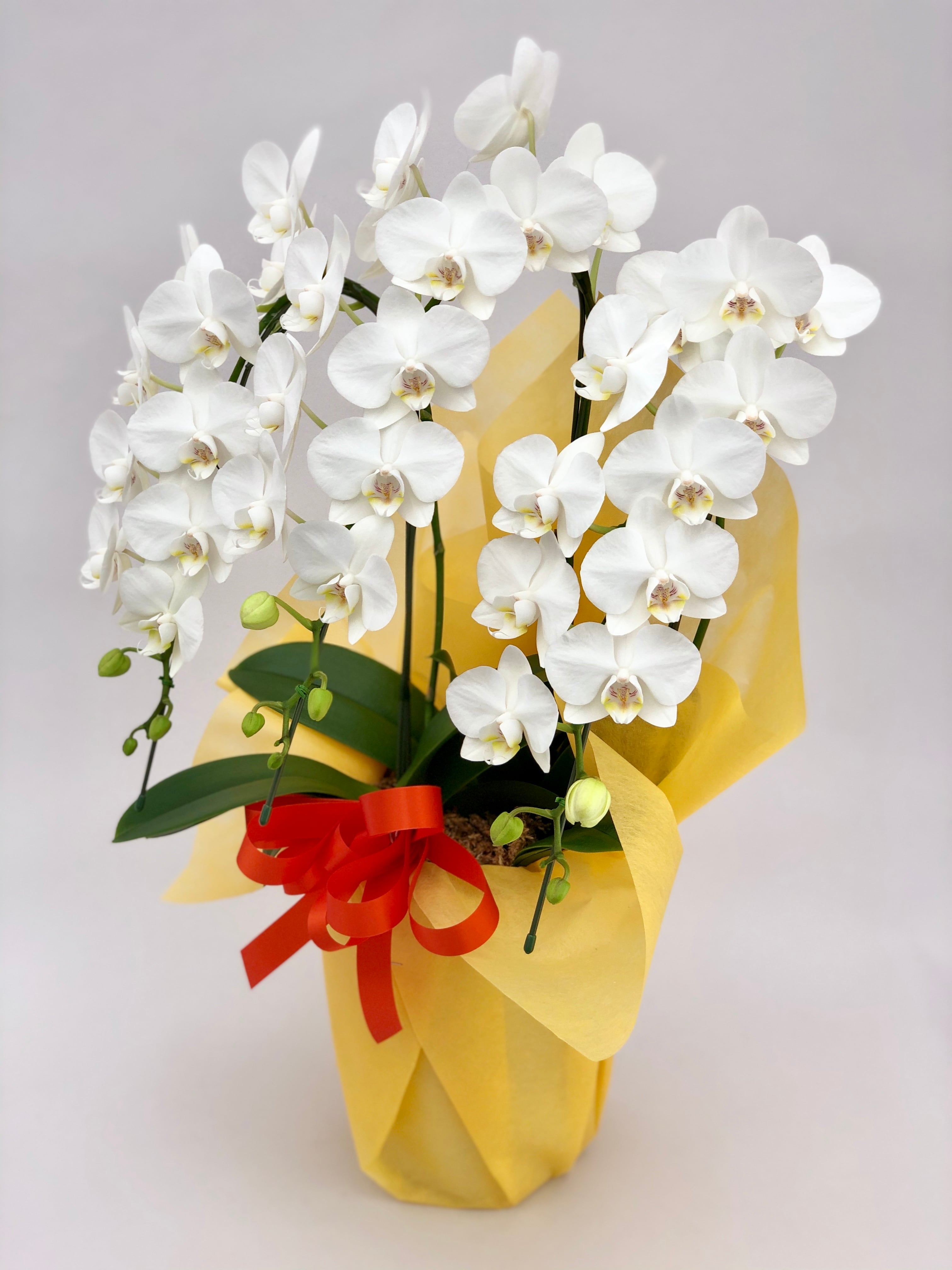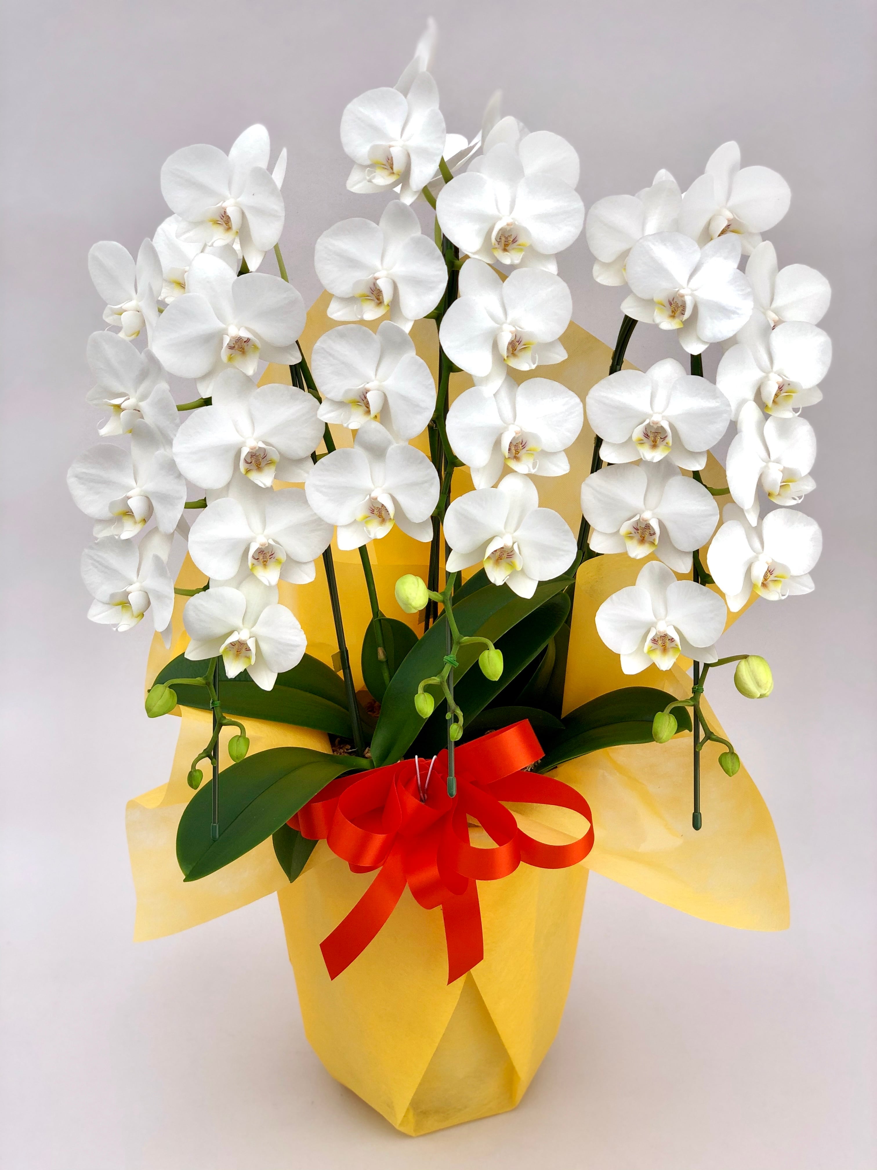白いお花の小輪形胡蝶蘭です。用途を選ばない大変人気の胡蝶蘭です。